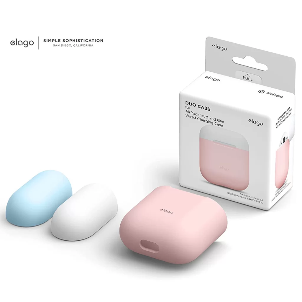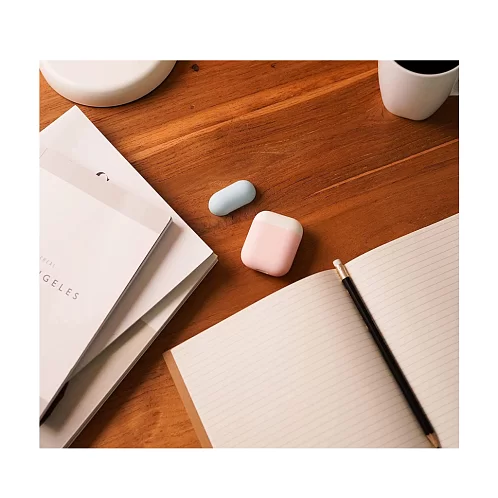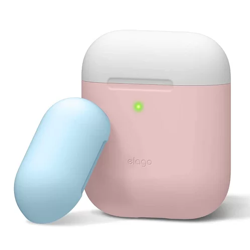 Чехол Elago DUO для AirPods, силикон, розовый, крышки - белый и голубой