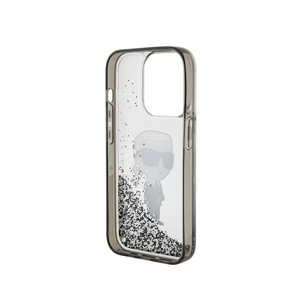 Чехол Lagerfeld для iPhone 15 Liquid Glitter NFT Karl Ikonik Hard Transparent/Black