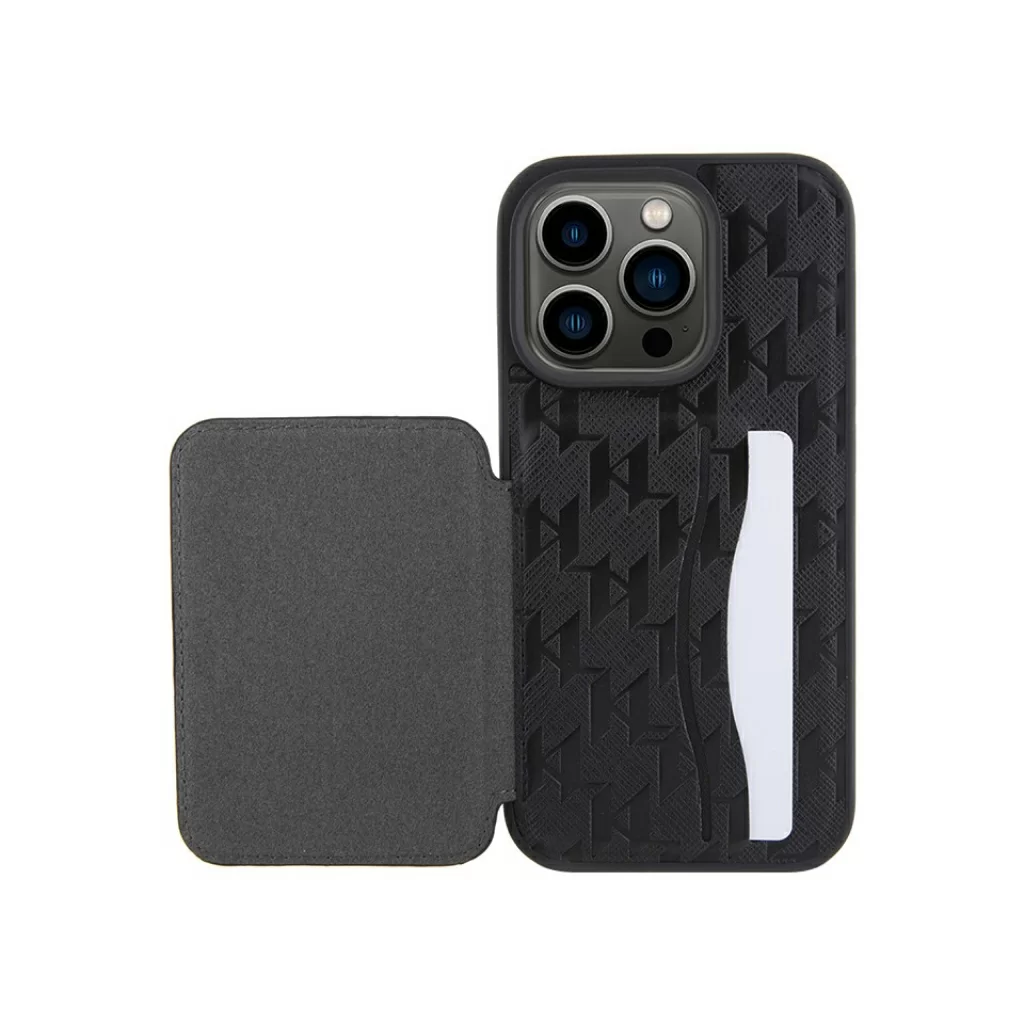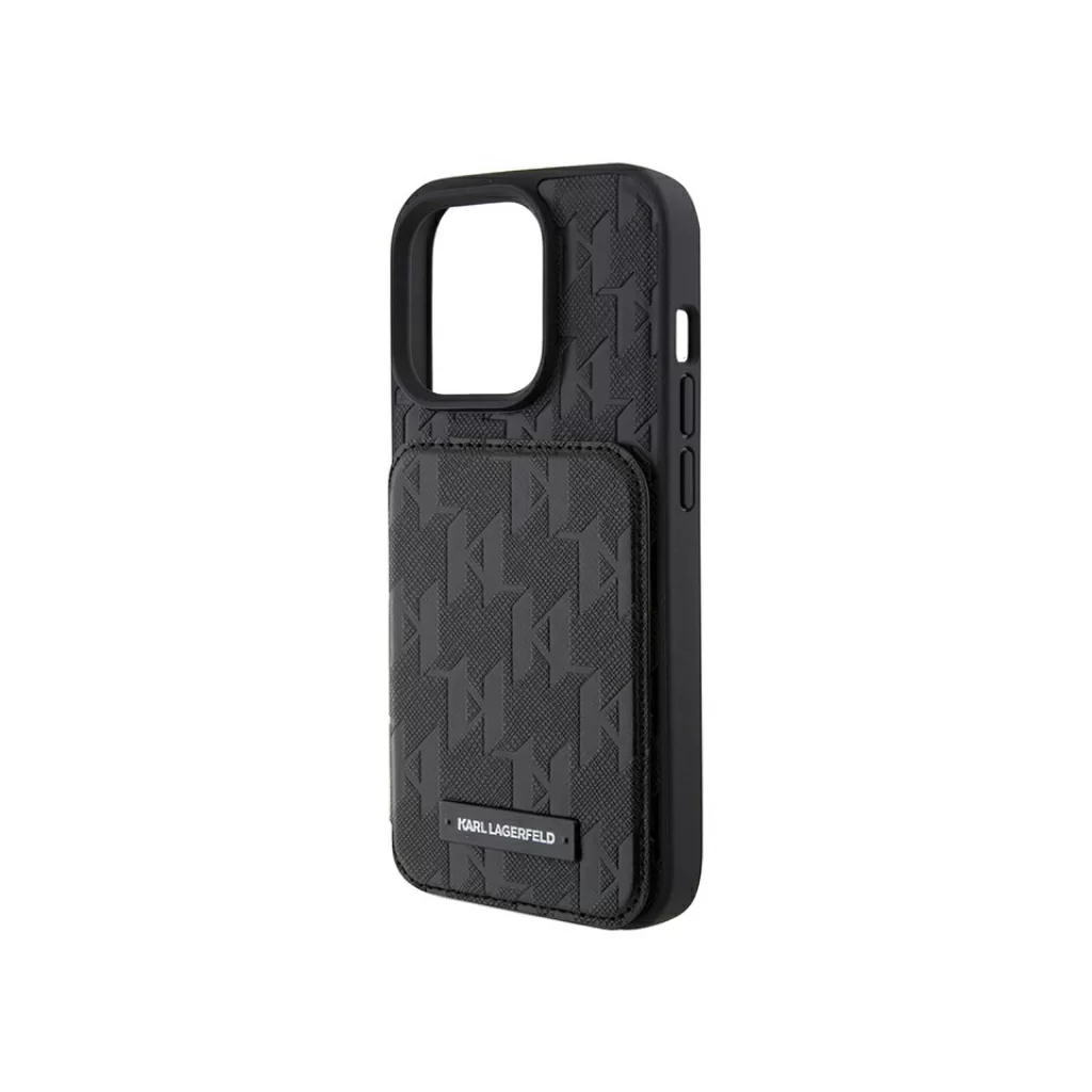 Чехол Lagerfeld для iPhone 15 Pro Max Cardslot Stand PU Saffiano Monogram Plate logo Hard Black