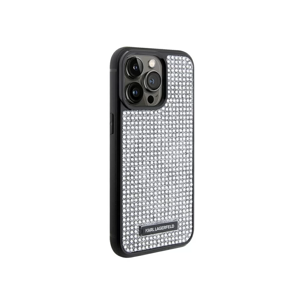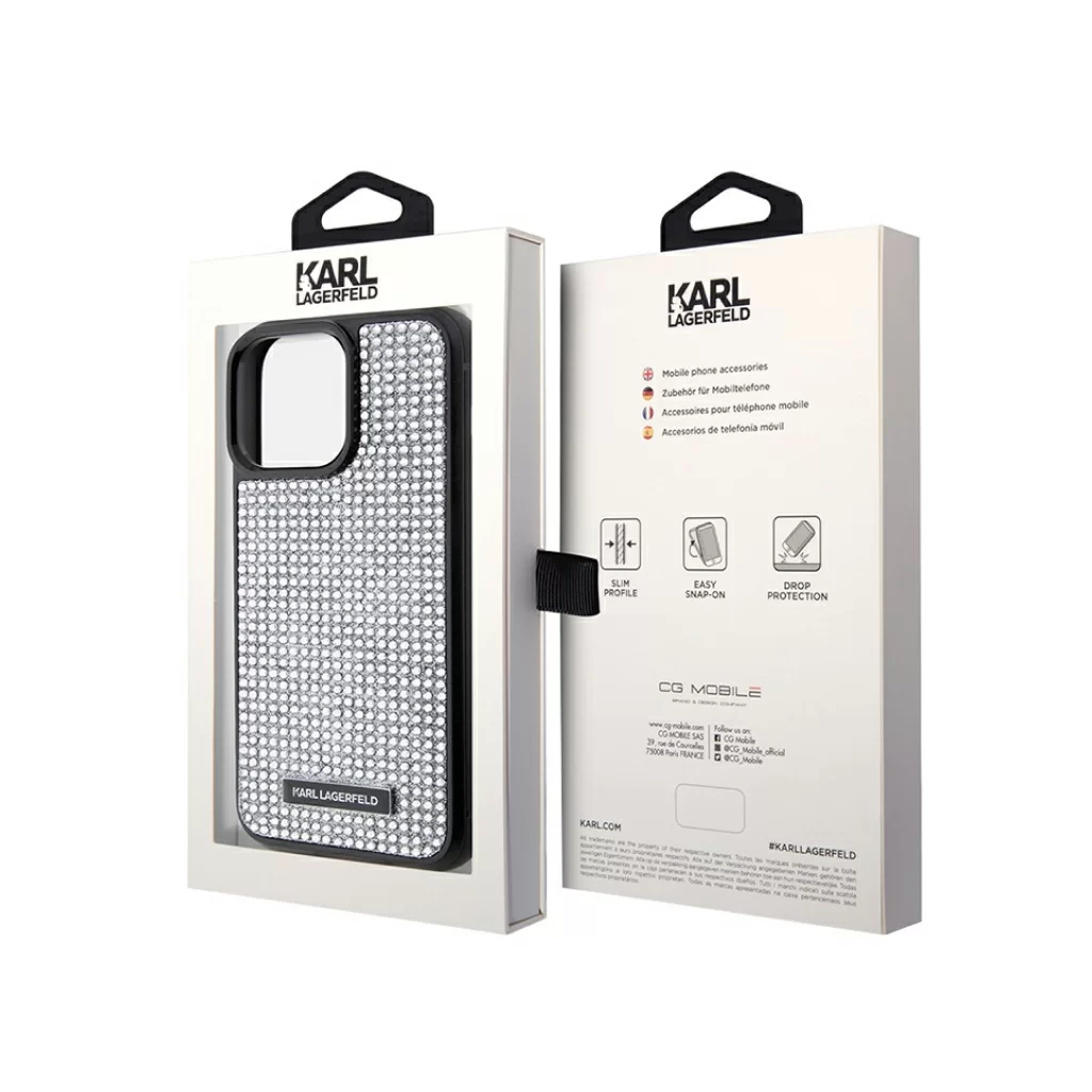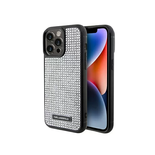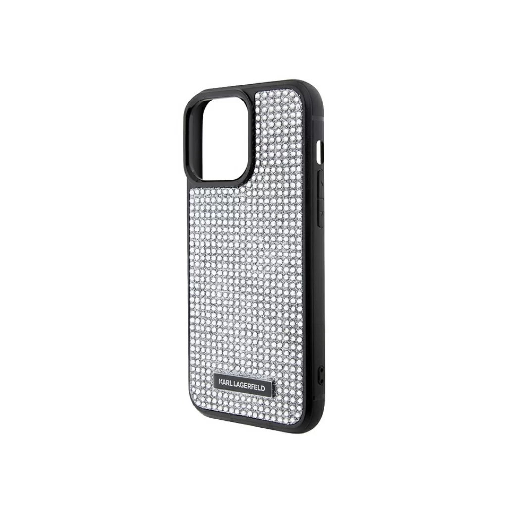 Чехол Lagerfeld для iPhone 15 Pro Max Diamond Rhinestone Metal logo Hard Silver