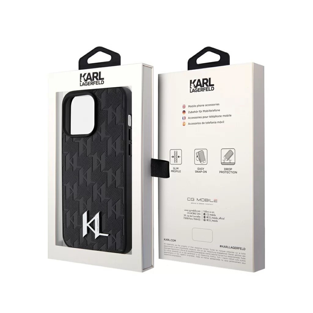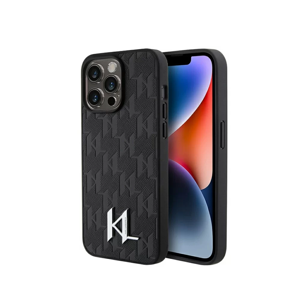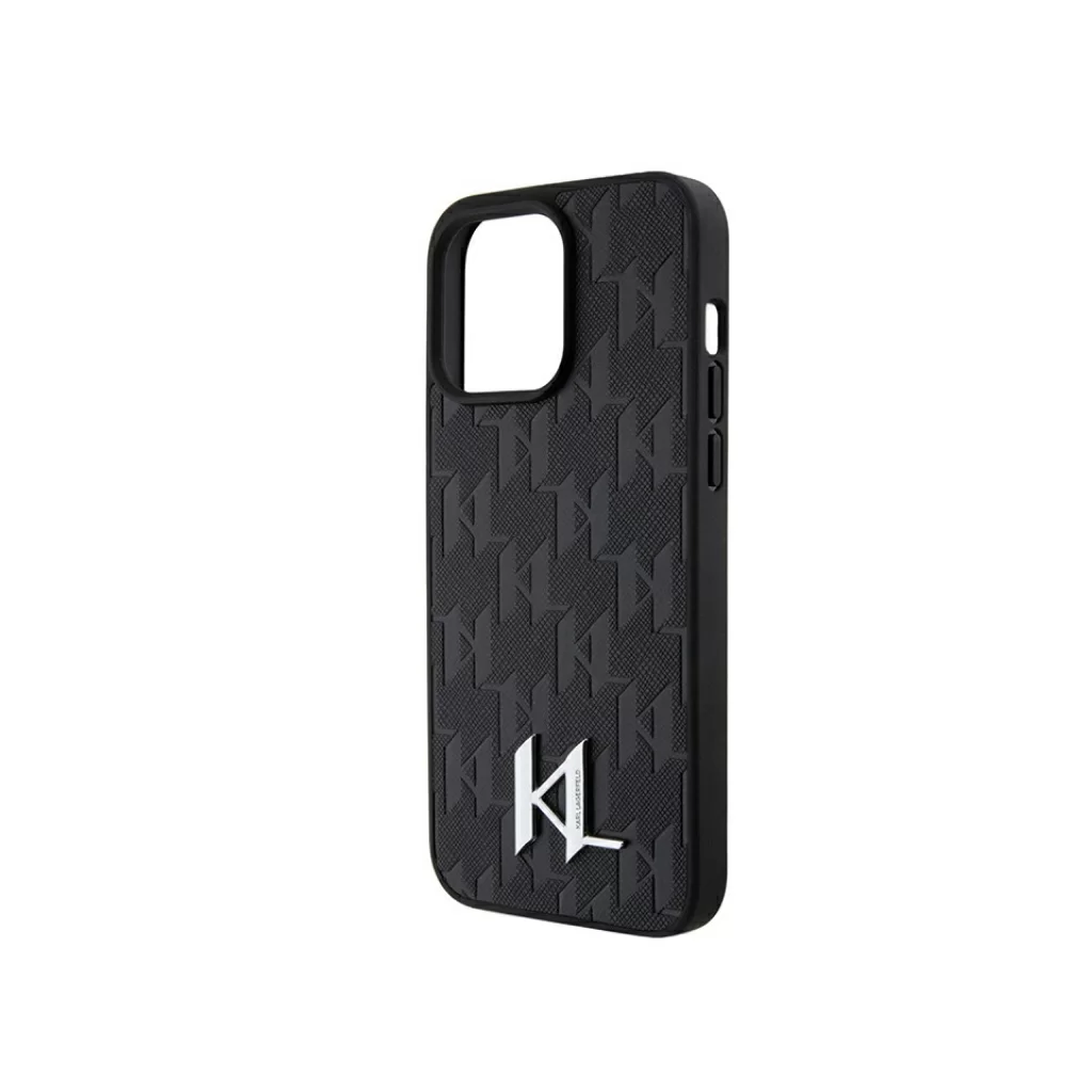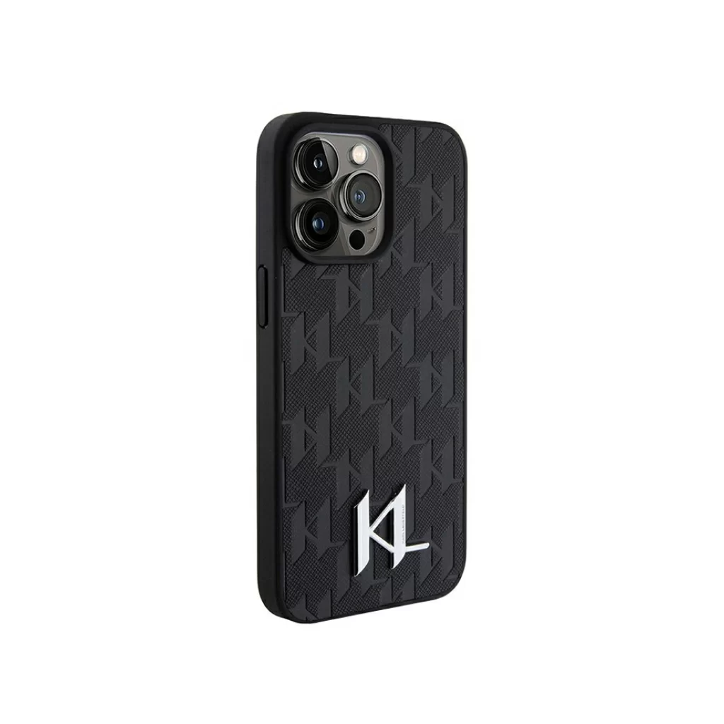 Чехол Lagerfeld для iPhone 15 Pro PU Saffiano Monogram Metal logo Hard Black
