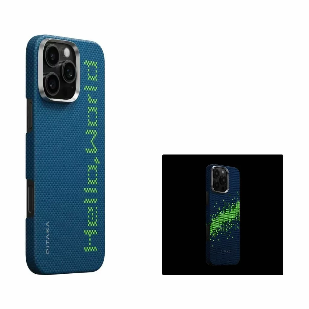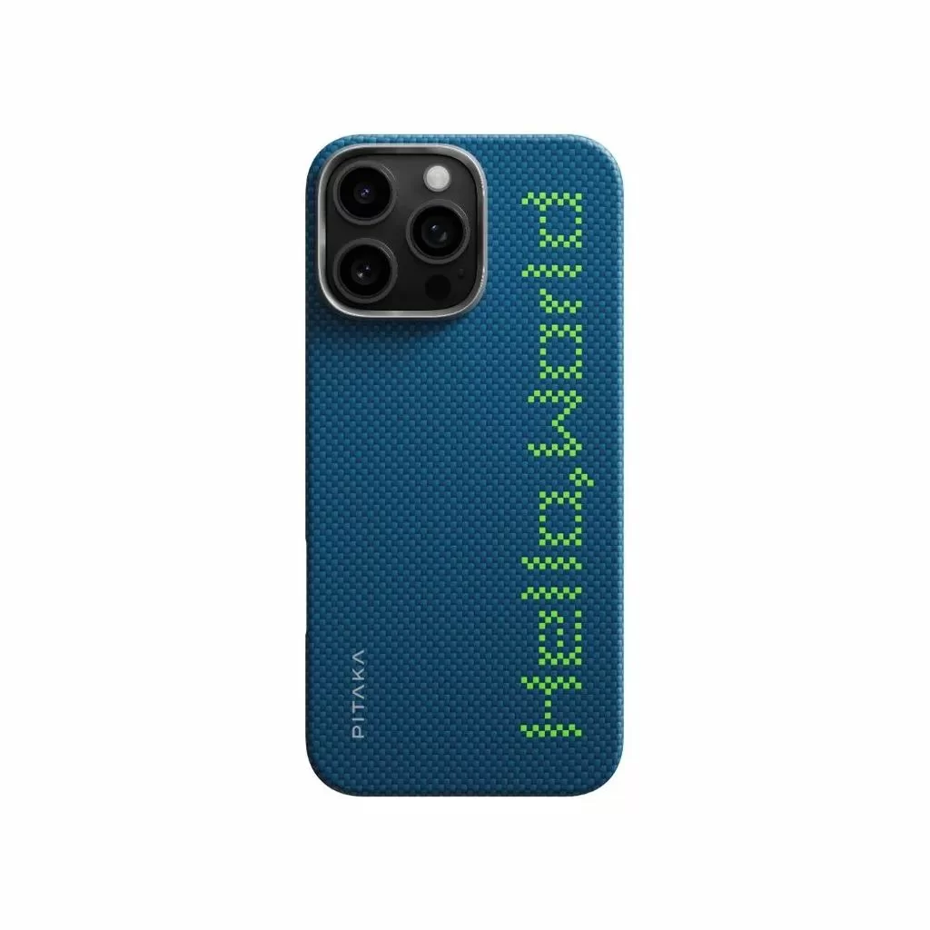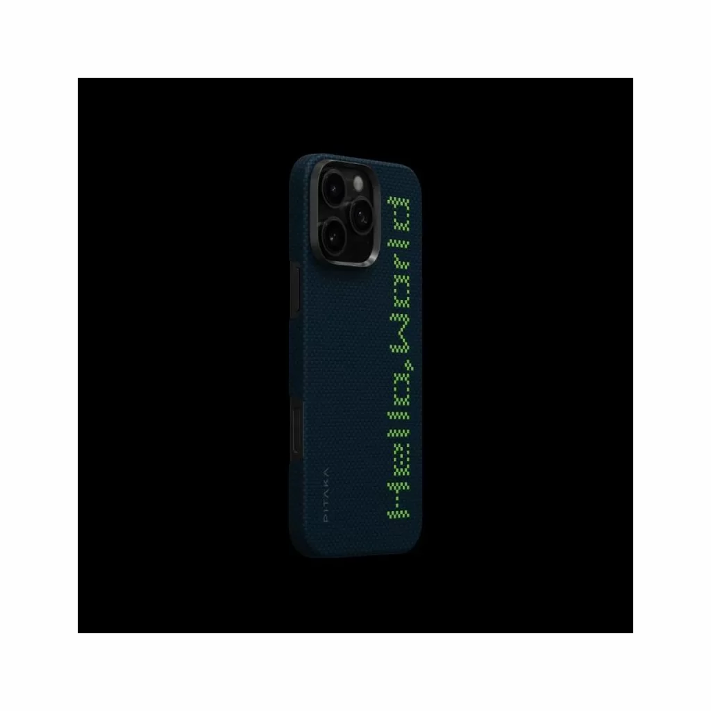 Чехол светящийся Pitaka Tactile Woven для iPhone 16 Pro, Hello World | синий