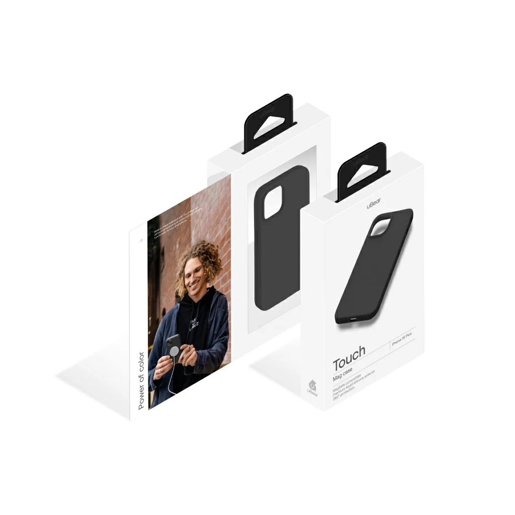 Чехол uBear для iPhone 15 Plus Touch Mag Case, силикон, софт-тач, чёрный
