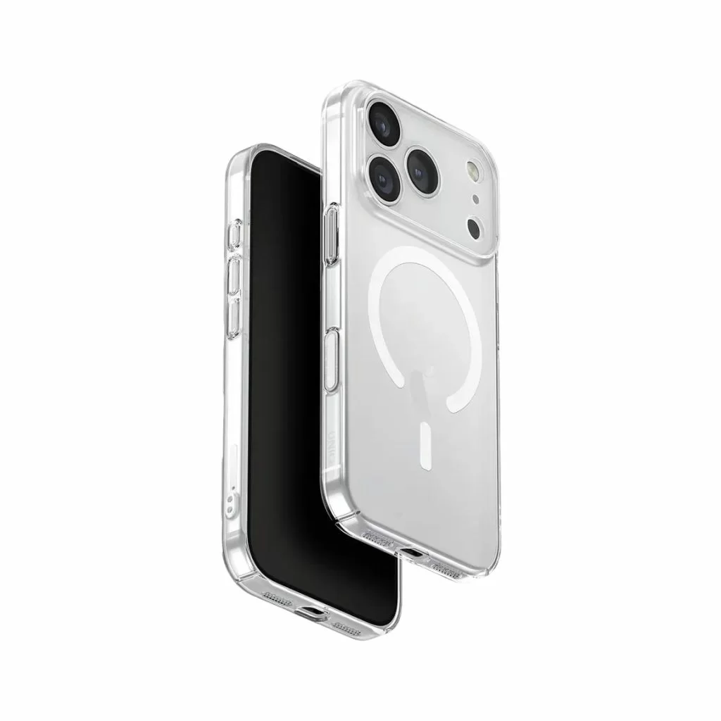 Чехол Uniq AirSuit MagSafe для iPhone 17 Pro — изготовленный из прочного поликарбоната, полностью закрывает устройство, не утяжеляя его. Приподнятая задняя рамка защищает объектив, а устойчивое к царапинам покрытие и высокая прозрачность сохраняют его в первозданном виде, подчёркивая оригинальный дизайн вашего телефона. Точные вырезы обеспечивают удобство использования, а тактильная поддержка кнопки управления камерой делает каждое нажатие естественным. Чехол совместим с MagClick™ и поддерживает беспроводную зарядку, а также легко подключается к аксессуарам MagClick™. Создан для повседневной защиты и выполнен в минималистичном стиле.