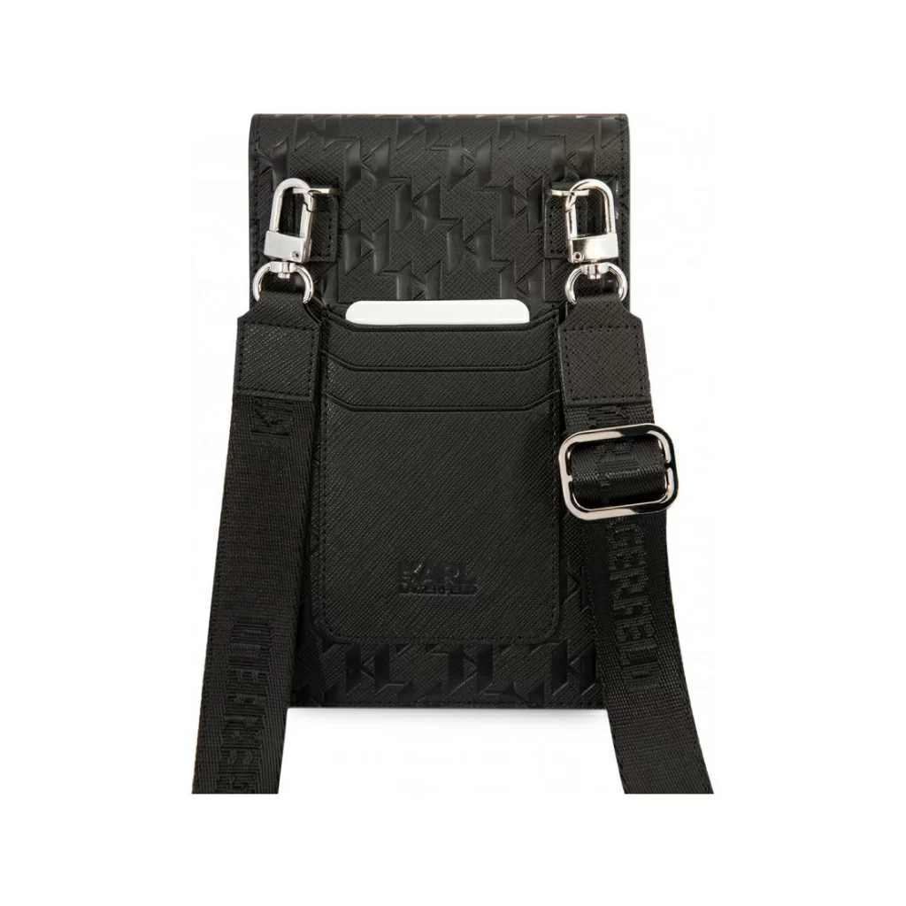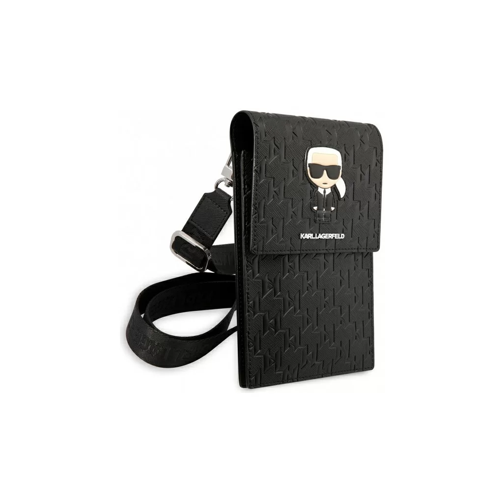 Сумка Lagerfeld Wallet Phone Pouch Saffiano Monogram Ikonik patch для смартфонов, серебро / черный