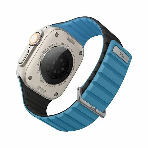 Двусторонний ремешок из мягкого силикона Uniq REVIX EVO для Apple Watch с размером корпуса 49-46-45-44. Вы можете легко поменять внешние стороны ремешка в зависимости от своего стиля и предпочтений. Фиксируется на руке с помощью удобной магнитной застежки, выдерживает нагрузку до 1.2 кг. Возможность регулировки длины за счет встроенных магнитов обеспечивает точное соответствие размерам руки. Металлическая стальная застежка дополнительно фиксирует устройство на запястье, позволяя не беспокоиться об утере даже при занятиях спортом.