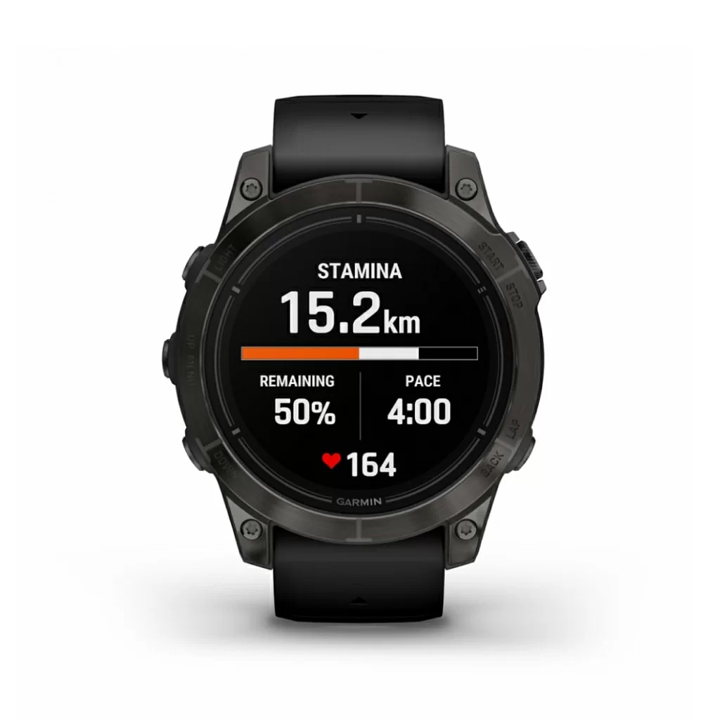 Надежная конструкция спортивных часов включает яркий AMOLED-дисплей 1,3” с защитой от появления царапин, чувствительный сенсорный экран, традиционные кнопки и корпус 47 мм из усиленного волокнами полимера. Кольцо вокруг дисплея и задняя крышка выполнены из титана. Часы тестируются на соответствие военным стандартам США по температурному и ударному воздействию, а также по водоустойчивости.