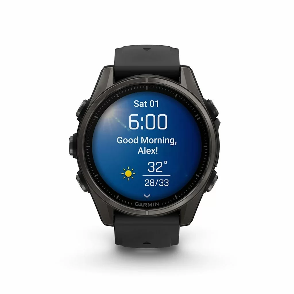 Garmin Fenix 8 получили сенсорный экран и диагональю 1,3 дюйма с разрешением 416х416 точек. AMOLED матрица передает картинку в высокой яркости и контрастности, изображение хорошо видно даже под углом. Экран защищен стеклом Power Sapphire, устойчивым к царапинам. Дисплей может отображать время в аналоговом и цифровом формате.