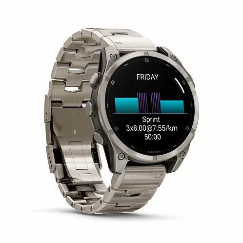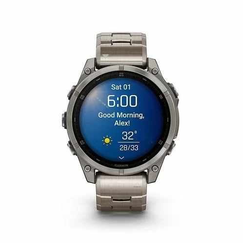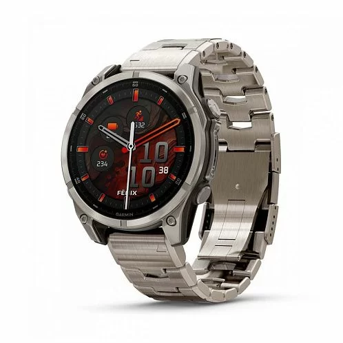 Garmin Fenix 8 — умные часы в титановом корпусе с поддержкой датчиков мониторинга здоровья, совместимы со смартфонами на ОС Android и iOS. Могут принимать звонки и сообщения. Есть функция голосового управления. С часами можно нырять в воду на глубину до 100 м.
