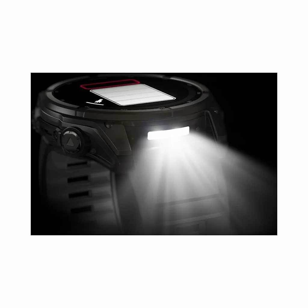 Эти прочные смарт-часы премиального класса могут использоваться для подводного плавания и включают герметичные кнопки, металлическую крышку для защиты датчиков, постоянно включенный дисплей 1,3” с подзарядкой от солнца и стеклом с защитой от образования царапин, а также титановое кольцо вокруг дисплея. Устройство протестировано в соответствии с военными стандартами США на термальные/ ударные нагрузки и водонепроницаемость.