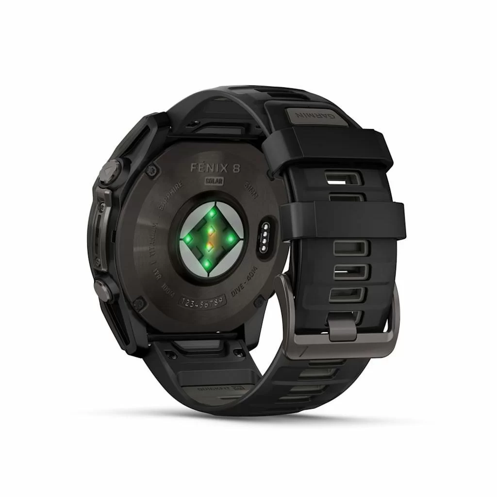 Умные часы Garmin Fenix 8 Sapphire Solar 51 мм, титан с DLC, ремешок - силикон, чёрный/серый