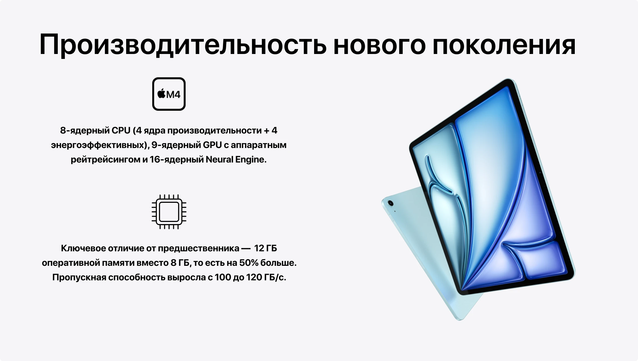 iPad Air всегда занимал особое место в линейке Apple: не базовый и не Pro, а точная середина — планшет, в котором мощность не приносится в жертву цене. С переходом на чип M4 эта позиция стала ещё убедительнее. Производительность, которая раньше требовала доплаты за Pro, теперь доступна по более низкой цене.