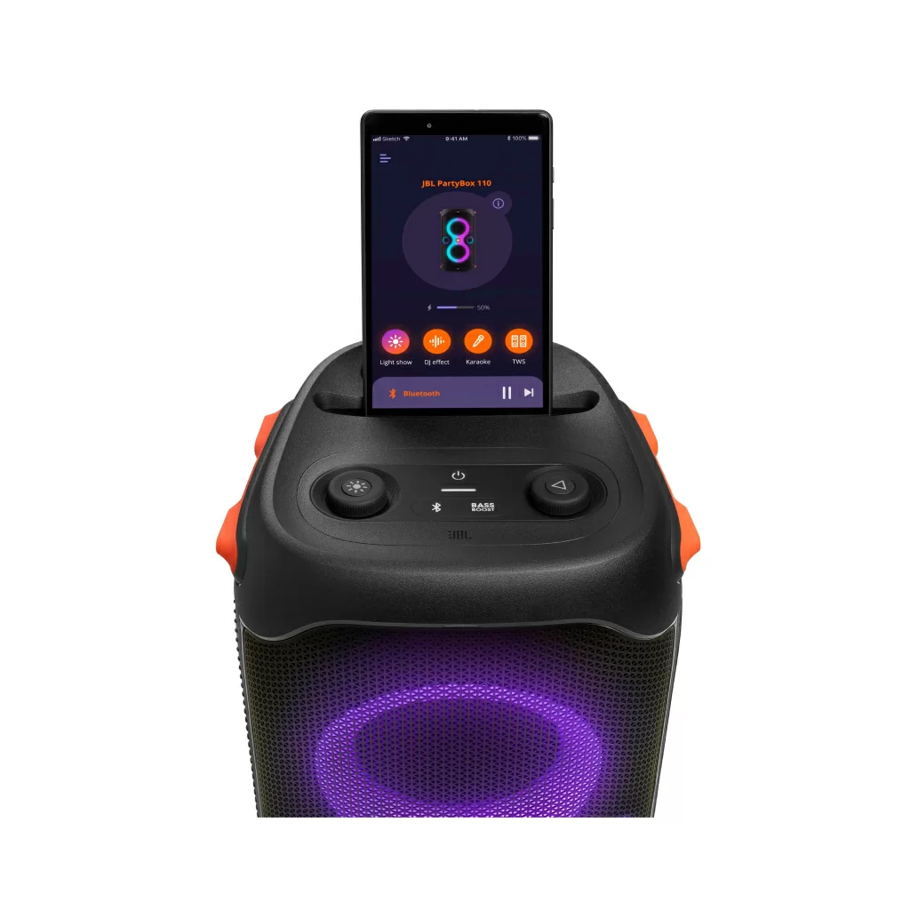 JBL PartyBox 110  обеспечивает превосходное звучание музыки в помещении и на открытом воздухе благодаря двум уровням глубоких регулируемых басов и мощному звуку JBL Original Pro.