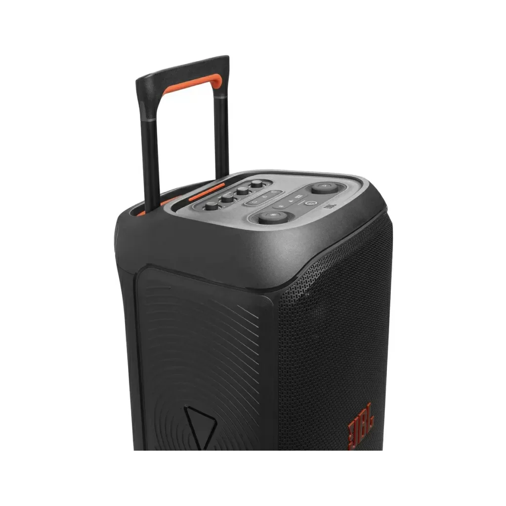 Прикатите свою колонку на вечеринку с широкими прочными колесами и удобной ручкой, которая выдвигается и опускается, когда нужно.