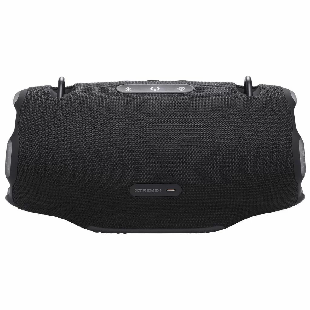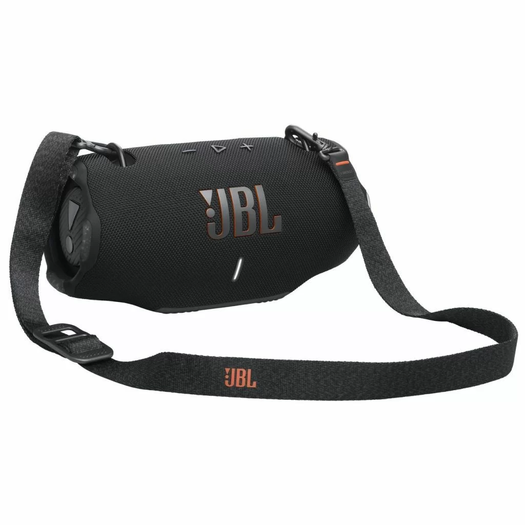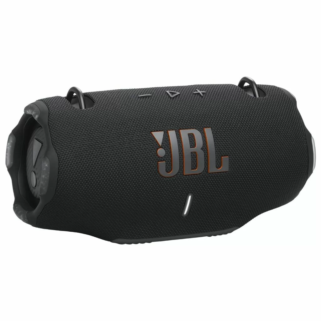В комплект JBL Xtreme 4 входят сама колонка, зарядный кабель и документация. Колонка выполнена из высококачественных материалов: ткань, пластик и резина. Прочные металлические крепления для ремня позволяют носить её на плече, освобождая руки. Весит колонка всего 2 кг, что делает её удобной для переноски.