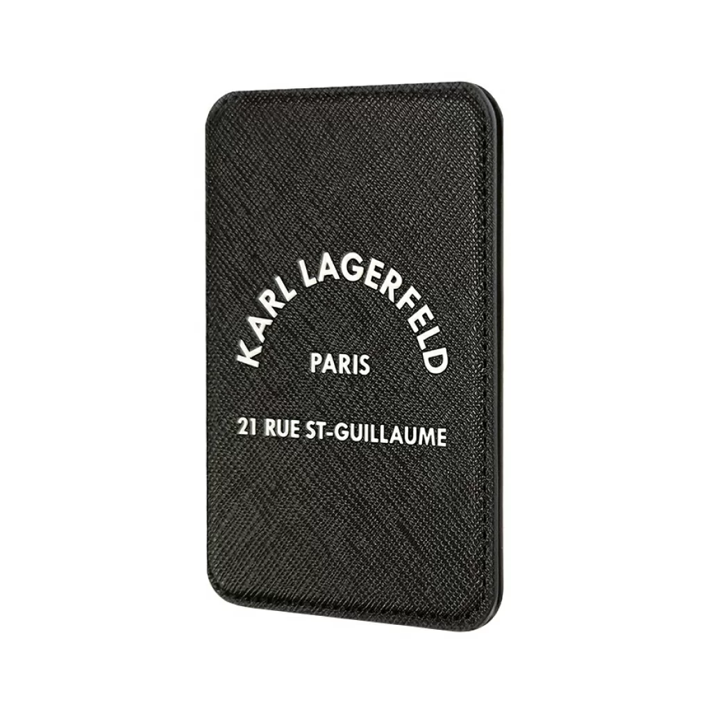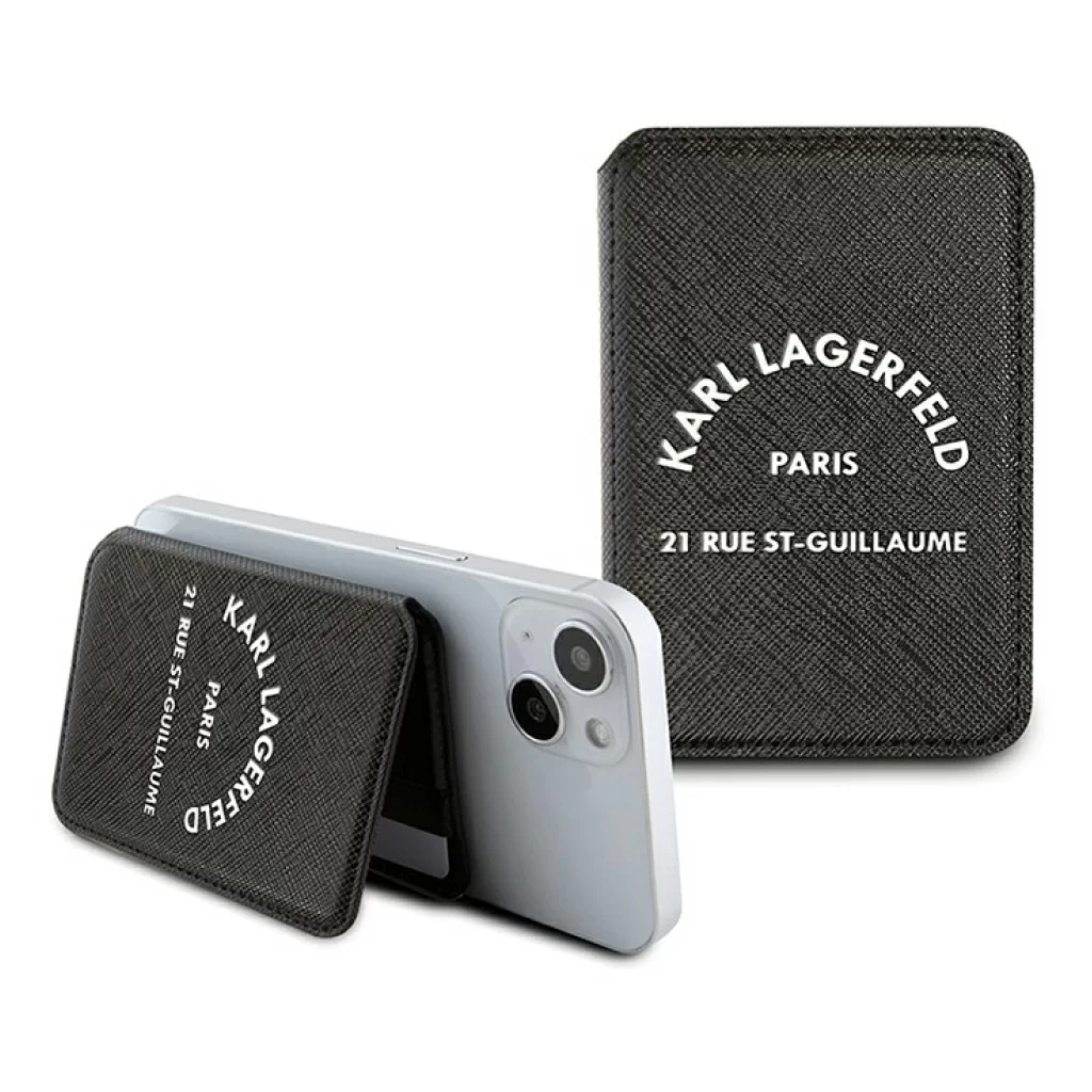 Чехол-бумажник Lagerfeld Wallet MagSafe Cardslot Stand Saffiano RSG logo, черный