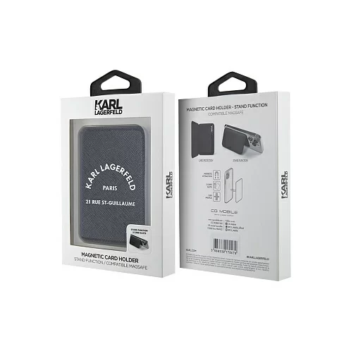 Бумажник Karl Lagerfeld поддерживает крепление Apple Magsafe. Инновационное решение позволяет легко и надежно присоединить аксессуар к задней панели вашего смартфона или установить на защитный чехол, который поставляется с магнитным кольцом MagSafe. Поверхность кошелька имитирует сафьяновую кожу, украшена принтом в стилистике бренда. Аксессуар также можно использовать в качестве подставки.