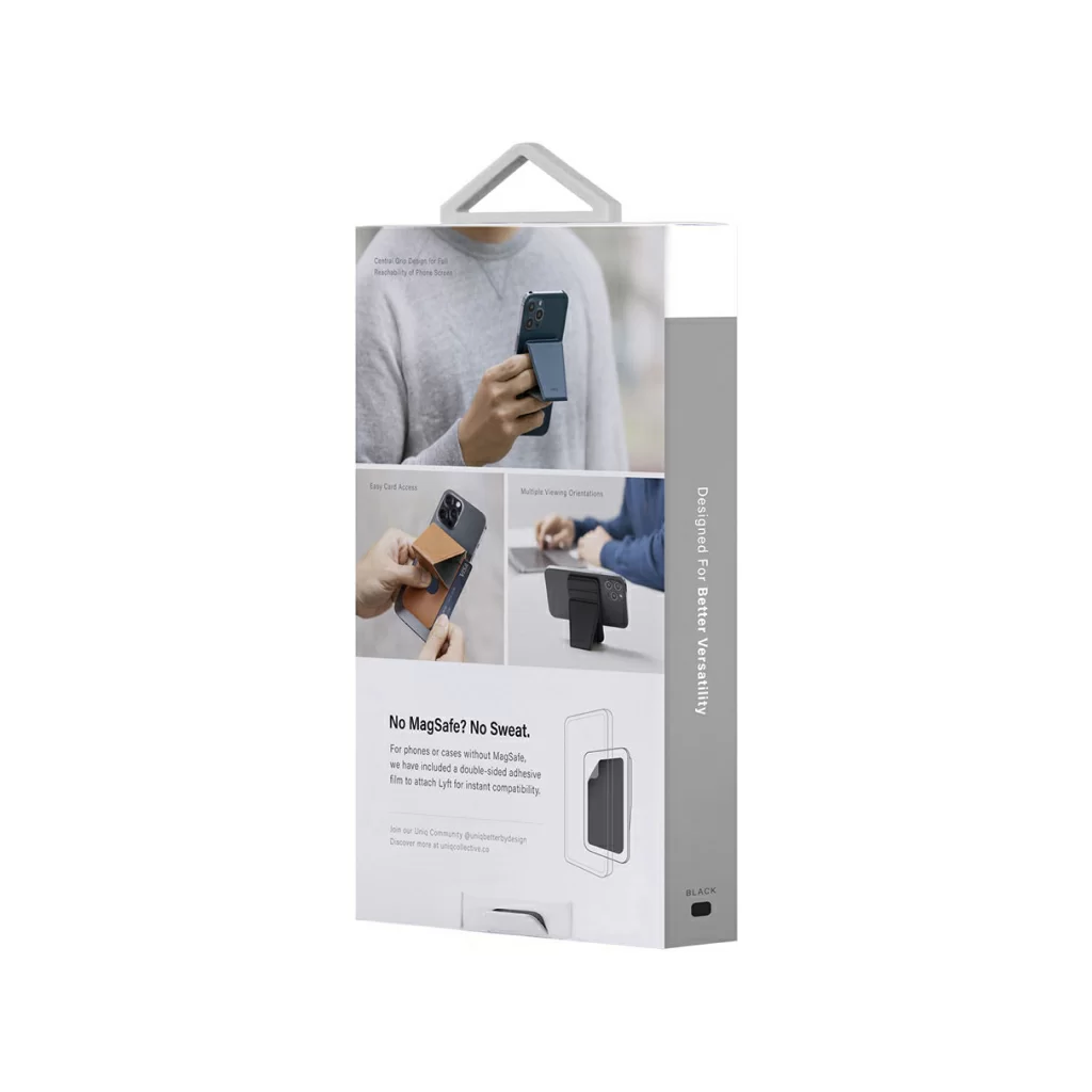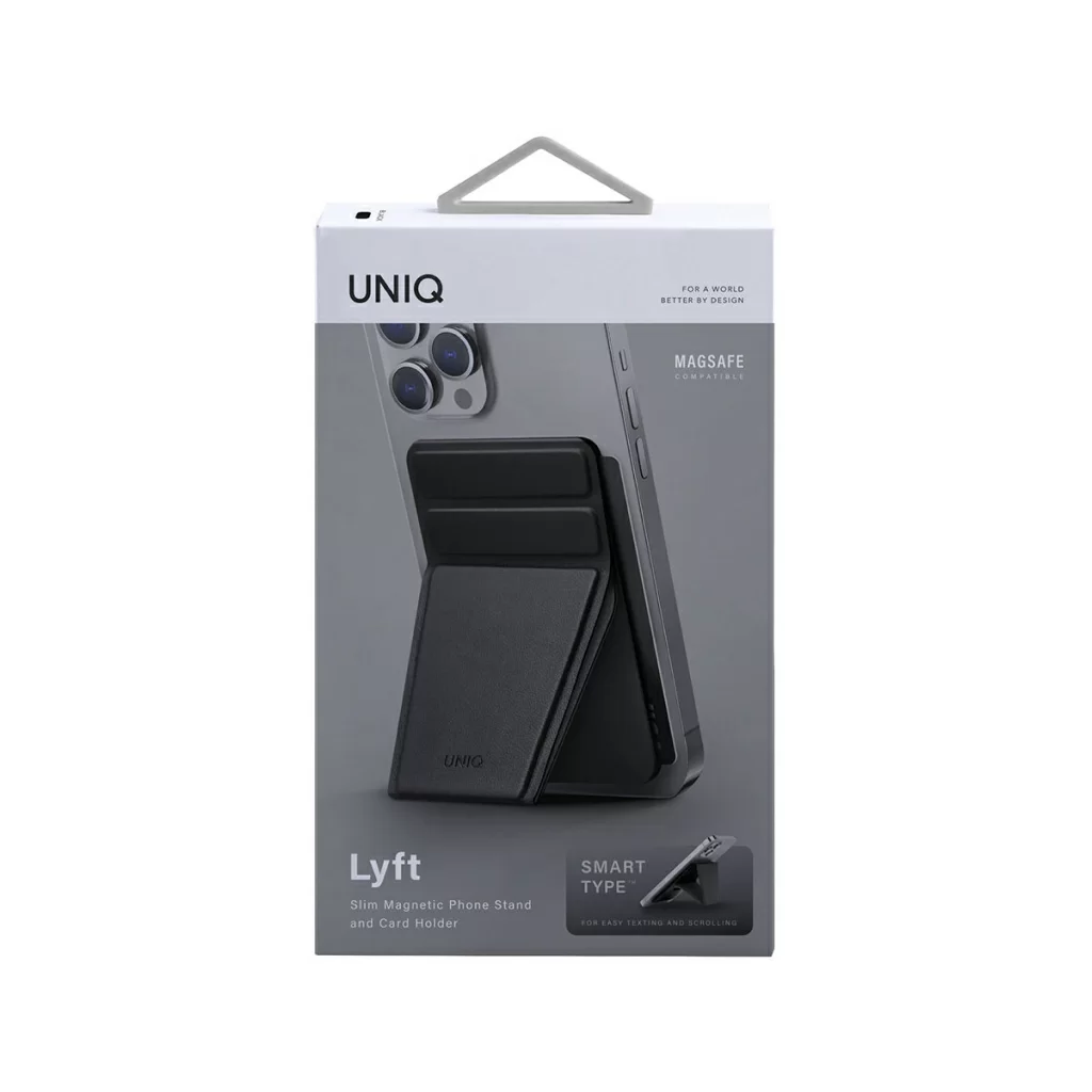 Uniq Lyft Magnetic - тонкая магнитная подставка/ручка для мобильного телефона и держатель для банковских карт. Просто установите его на MagSafe-совместимый телефон и наслаждайтесь просмотром в режиме видеозвонков или серфингом в сети Интернет. Телефон можно расположить как в портретной, так и в ландшафтной ориентации.