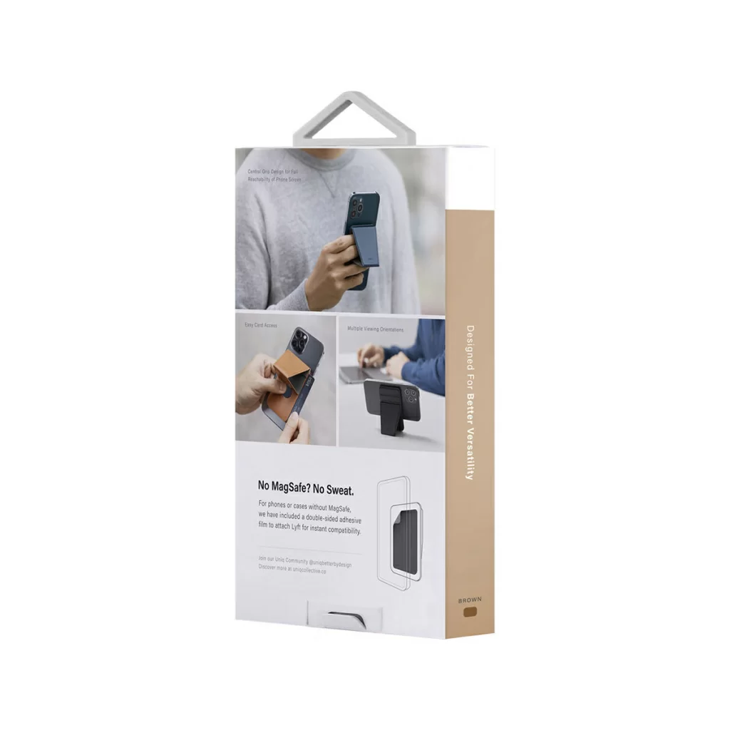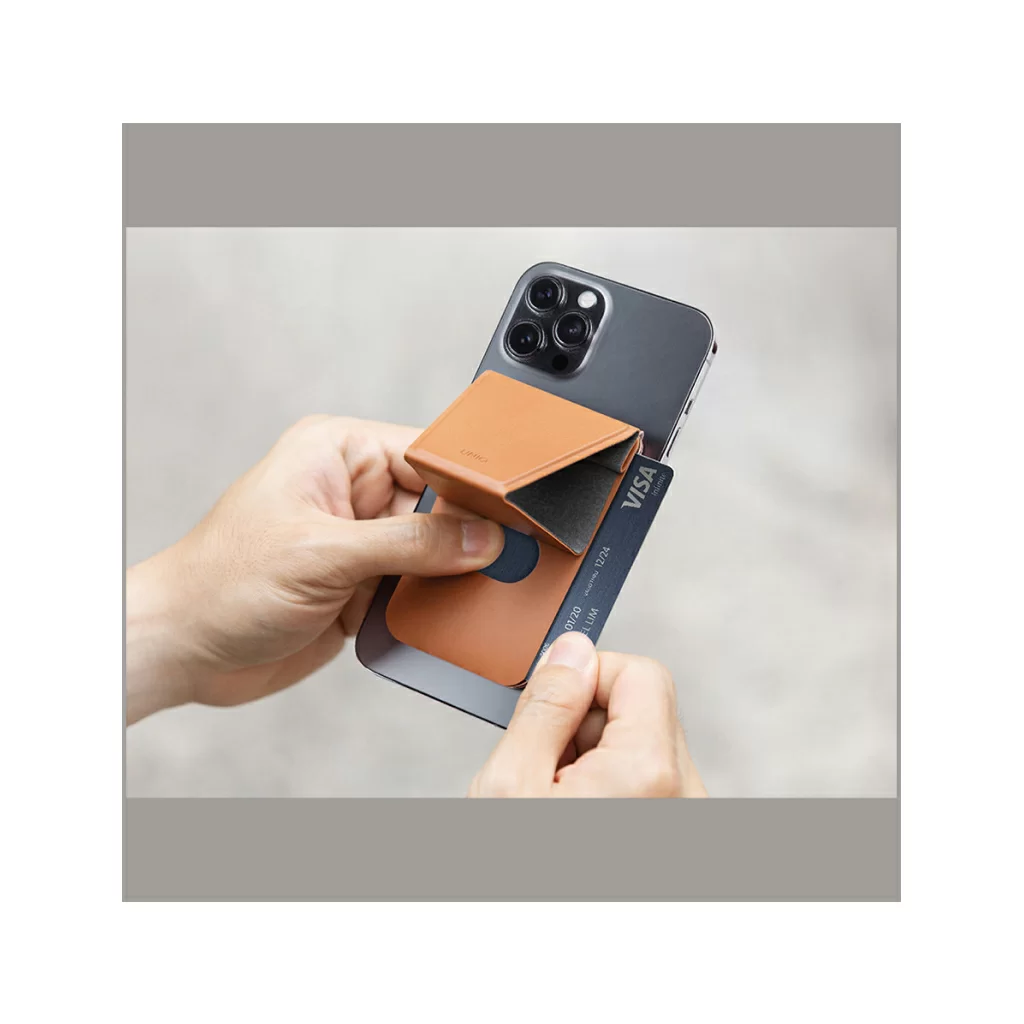 Uniq Lyft Magnetic - тонкая магнитная подставка/ручка для мобильного телефона и держатель для банковских карт. Просто установите его на MagSafe-совместимый телефон и наслаждайтесь просмотром в режиме видеозвонков или серфингом в сети Интернет. Телефон можно расположить как в портретной, так и в ландшафтной ориентации.
