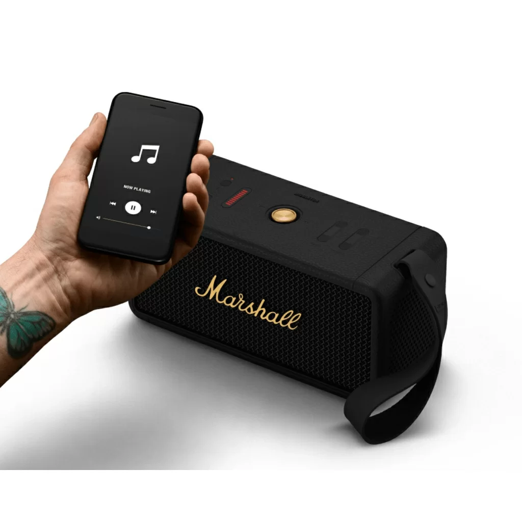 Middleton сохраняет верность культовому дизайну, который говорит о наследии бренда, и в то же время обеспечивает более экологичный подход Marshall. Прочная конструкция этой колонки на 55% состоит из переработанного пластика, полученного из использованной электроники, бутылок из под воды и автомобильных плафонов, и на 100% не содержит ПВХ.