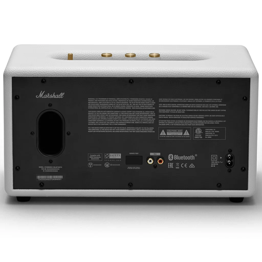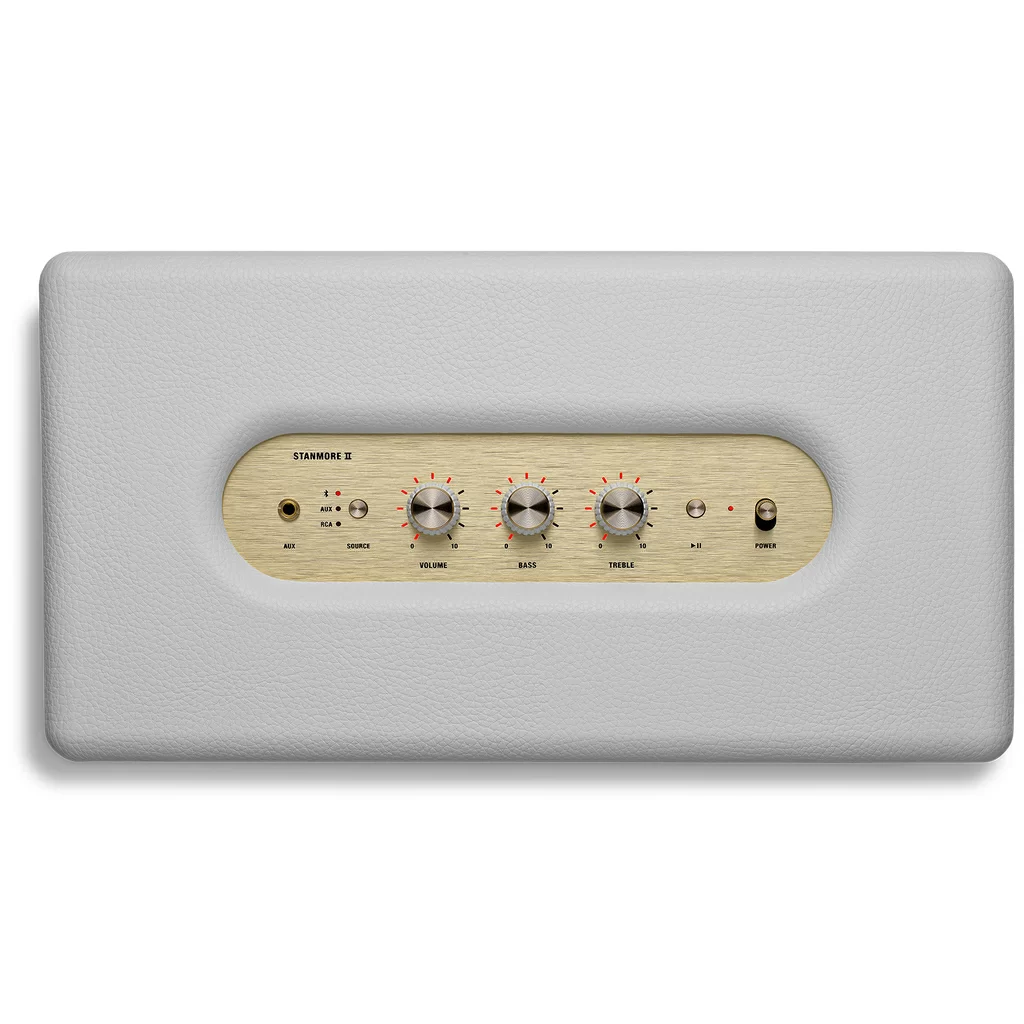 Классические детали Marshall, такие как текстурированное виниловое покрытие, решетка "соль и перец" и знаменитый логотип украшают прочную деревянную раму Stanmore II.