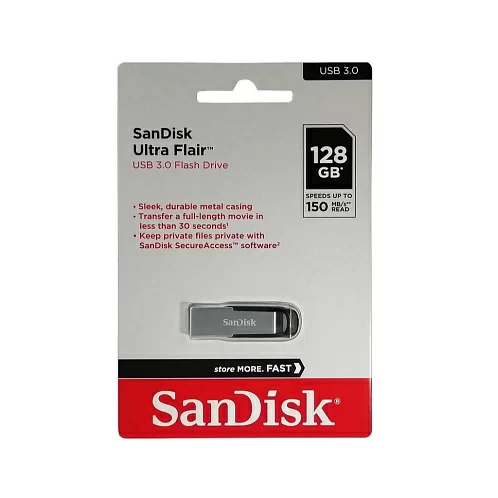 Флеш-накопитель SanDisk Ultra Flair 128Гб, USB 3.0 Flash Drive, серебристый