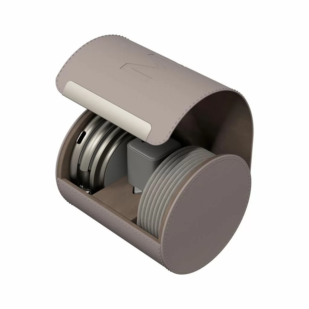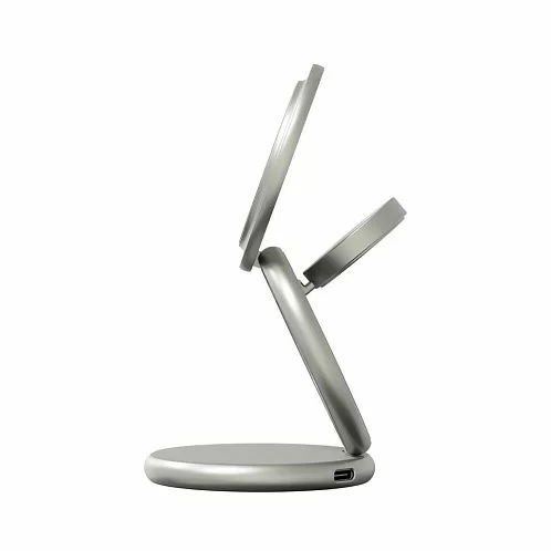Корпус выполнен из прочного цинкового сплава с матовым покрытием и встроенными магнитами класса N52, которые надёжно удерживают устройства. Конструкция складывается в три сегмента, что делает зарядку максимально компактной и удобной в дороге. В комплекте предусмотрен кожаный кейс, идеально подходящий для переноски и защиты.