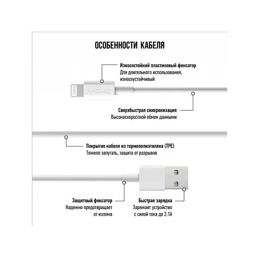 Кабель Dorten C89 Mfi Lightning / USB, 1.2м, белый