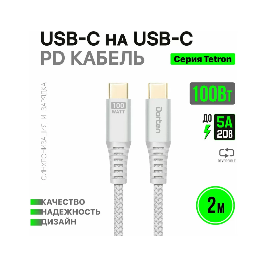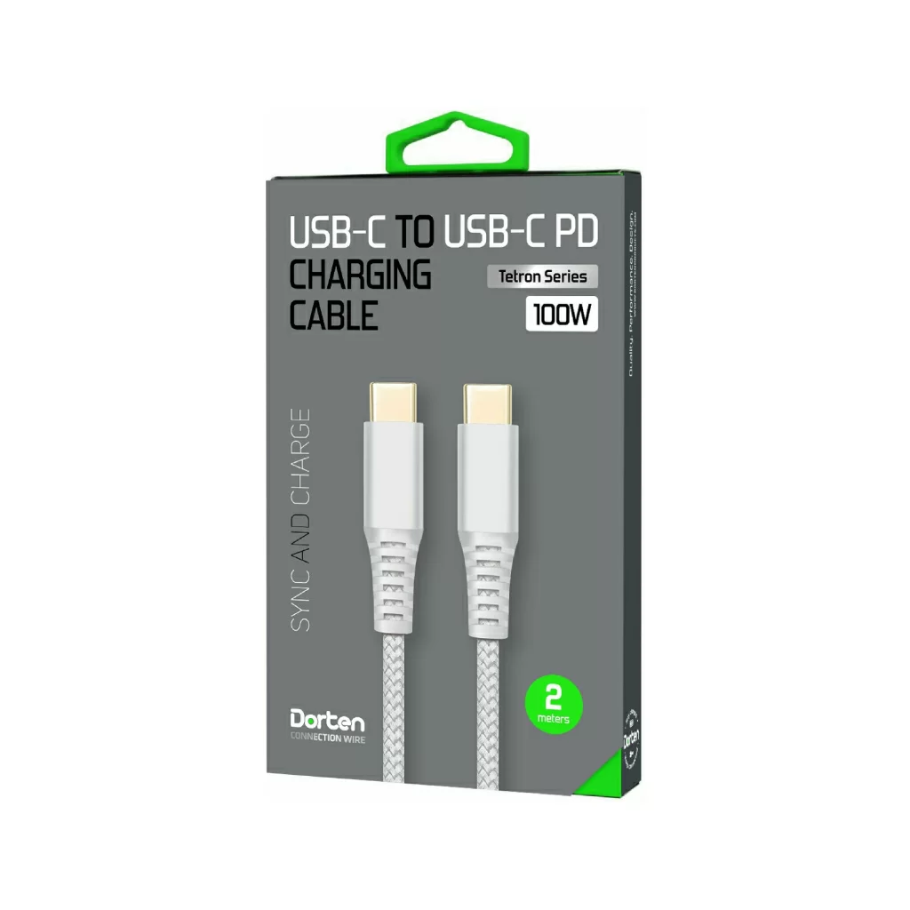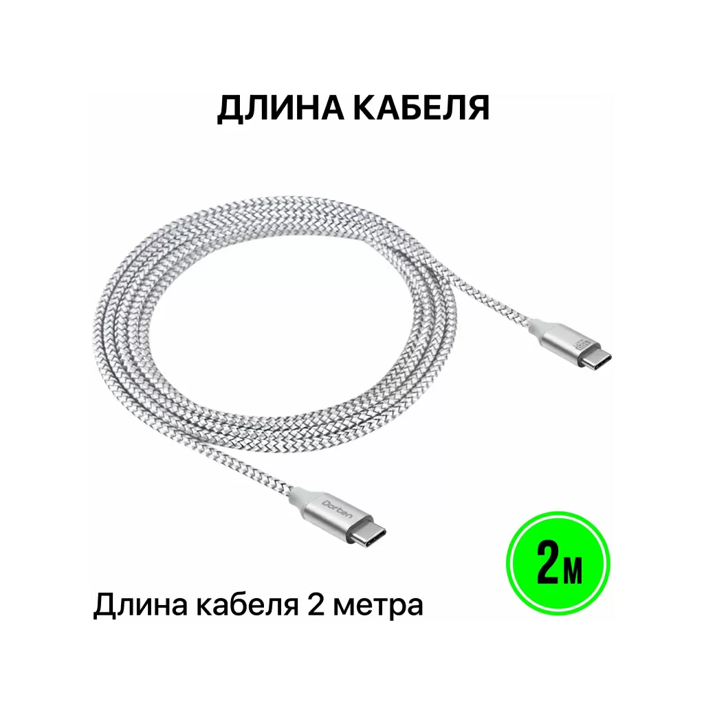 Кабель Dorten USB-C / USB-C PD, 100W, 2м, серебристый