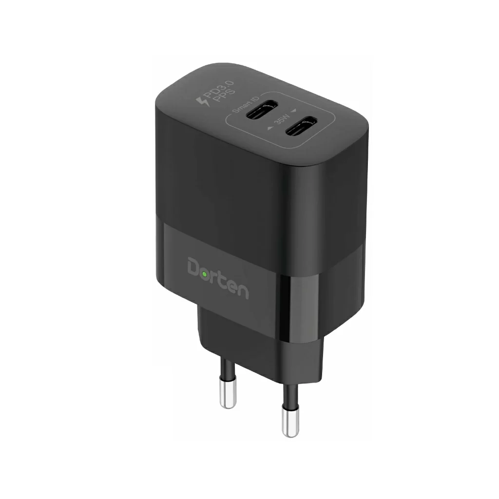 Сетевое зарядное устройство Dorten 35W с двумя портами USB-C и поддержкой технологии PD - это универсальный зарядник для ваших гаджетов. Заряжайте сразу два устройства, будь то ноутбук, планшет или смартфон, используя два порта USB-C.