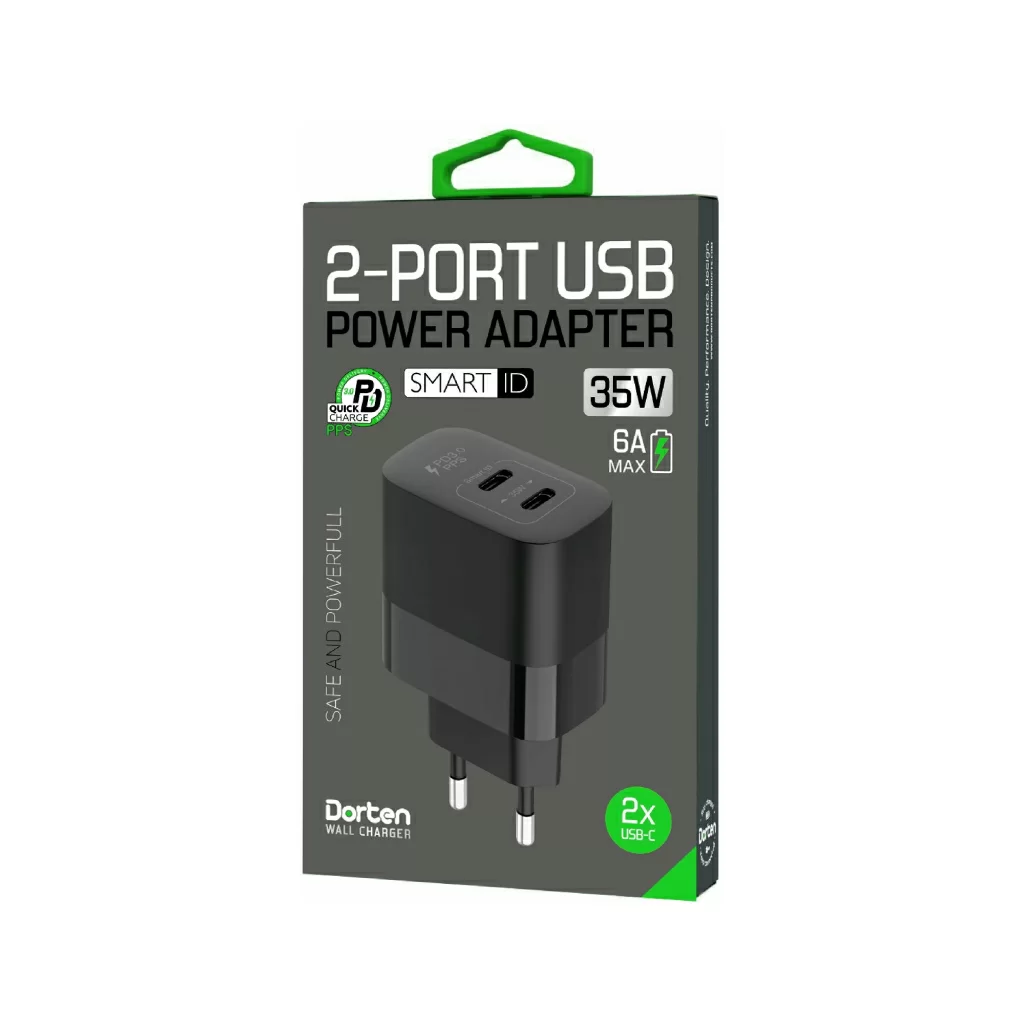 Сетевое зарядное устройство Dorten 2-Port USB Smart ID 35W, PD3.0/PPS, черный