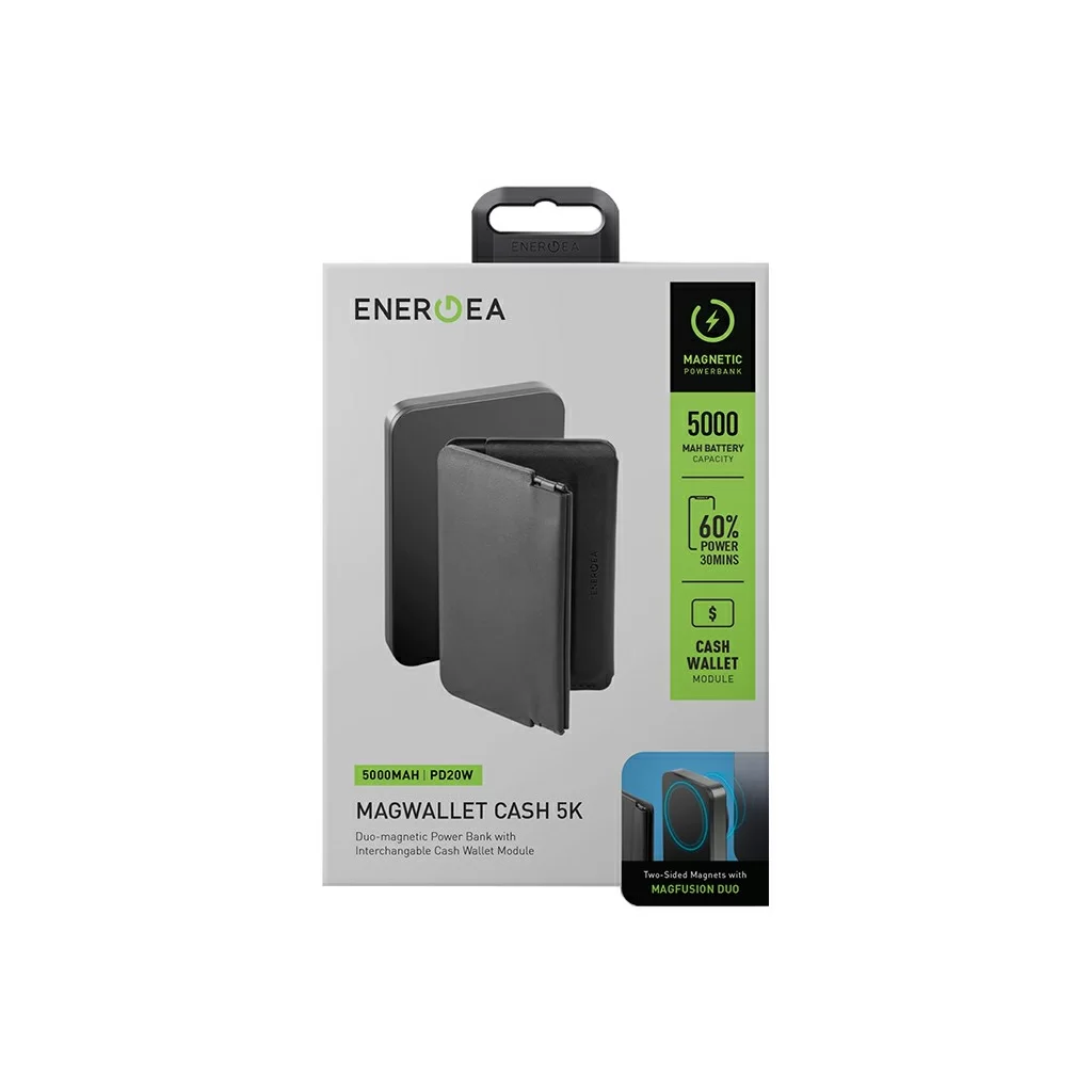 Внешний аккумулятор с бумажником EnergEA MagWallet CASH, 5000W Magsafe 15W USB-C 20W, темно-серый