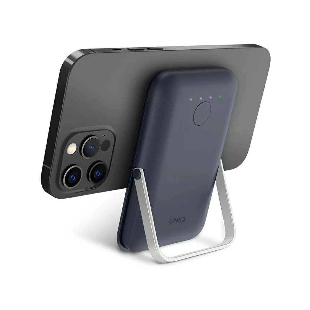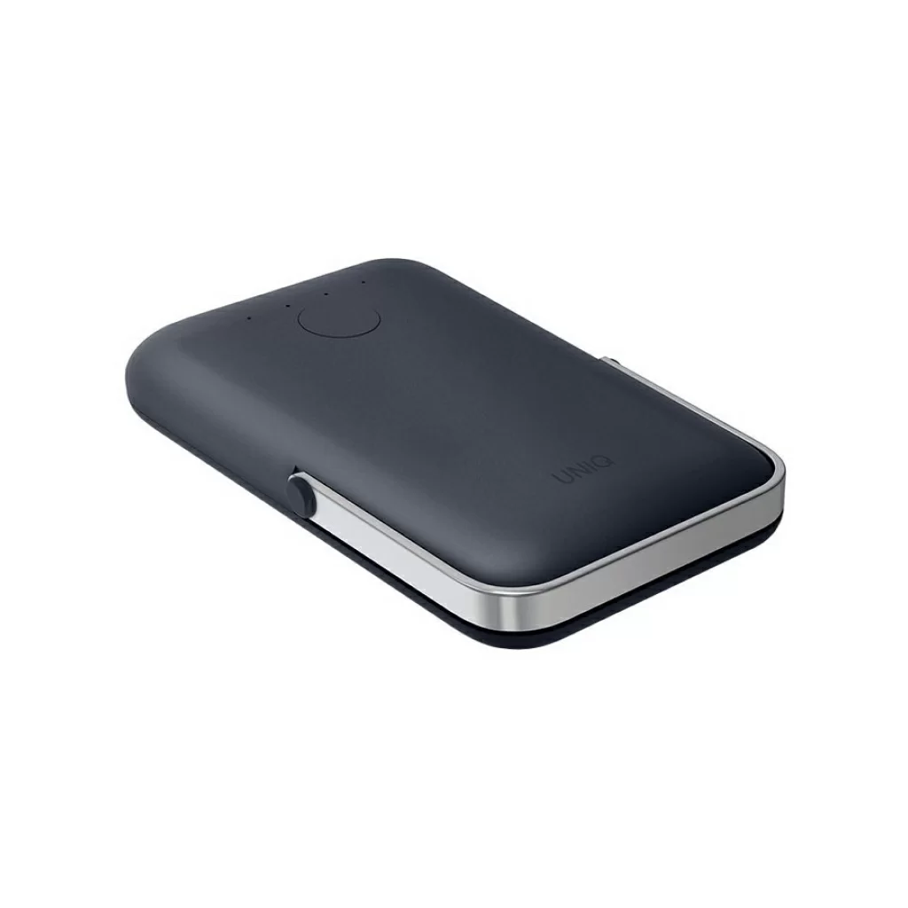 Внешний аккумулятор Uniq HOVEO 5000W, беспровод 15W, провод USB-C 20W, подставка, темно-синий