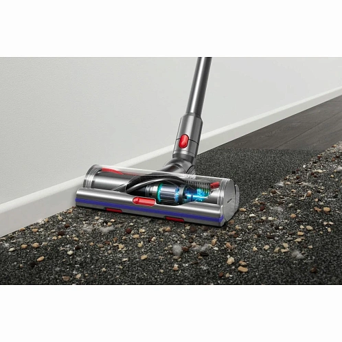 Модель оснащена циклонным фильтром, что обеспечивает простоту и удобство применения. Изделие отделяет частицы пыли, шерсть, волосы и мелкий бытовой сор от воздушного потока. Это повышает качество уборки, а также облегчает дыхание членов семьи. Специальная система извлечения мусора позволяет пользователю с легкостью освобождать контейнер. Для поддержания чистоты фильтр и насадку можно мыть в проточной воде. Вертикальный пылесос Dyson V15 Detect оснащен управлением электронного типа с дисплеем.
