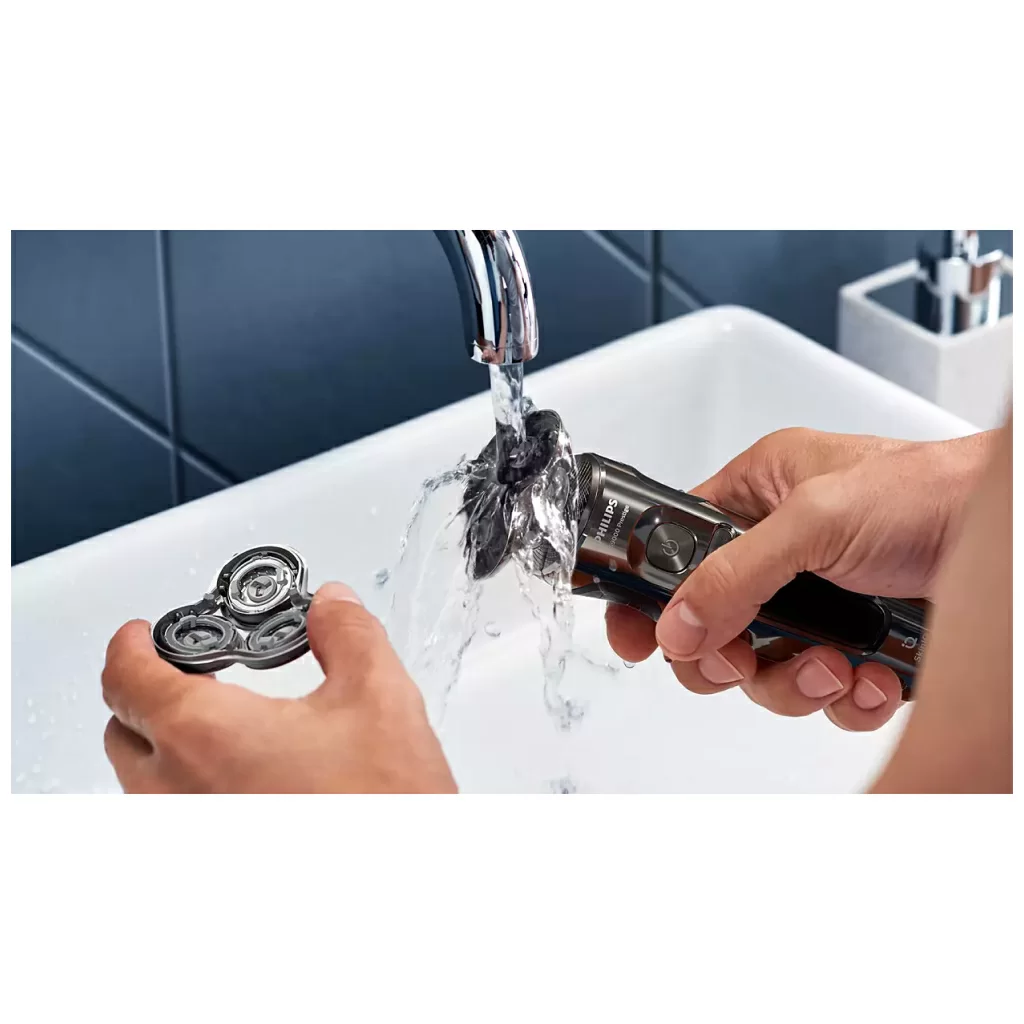 Philips S9000 Prestige оснащена высокоточной подвесной системой, которая обеспечивает идеальное положение лезвий для максимально точного срезания волосков.